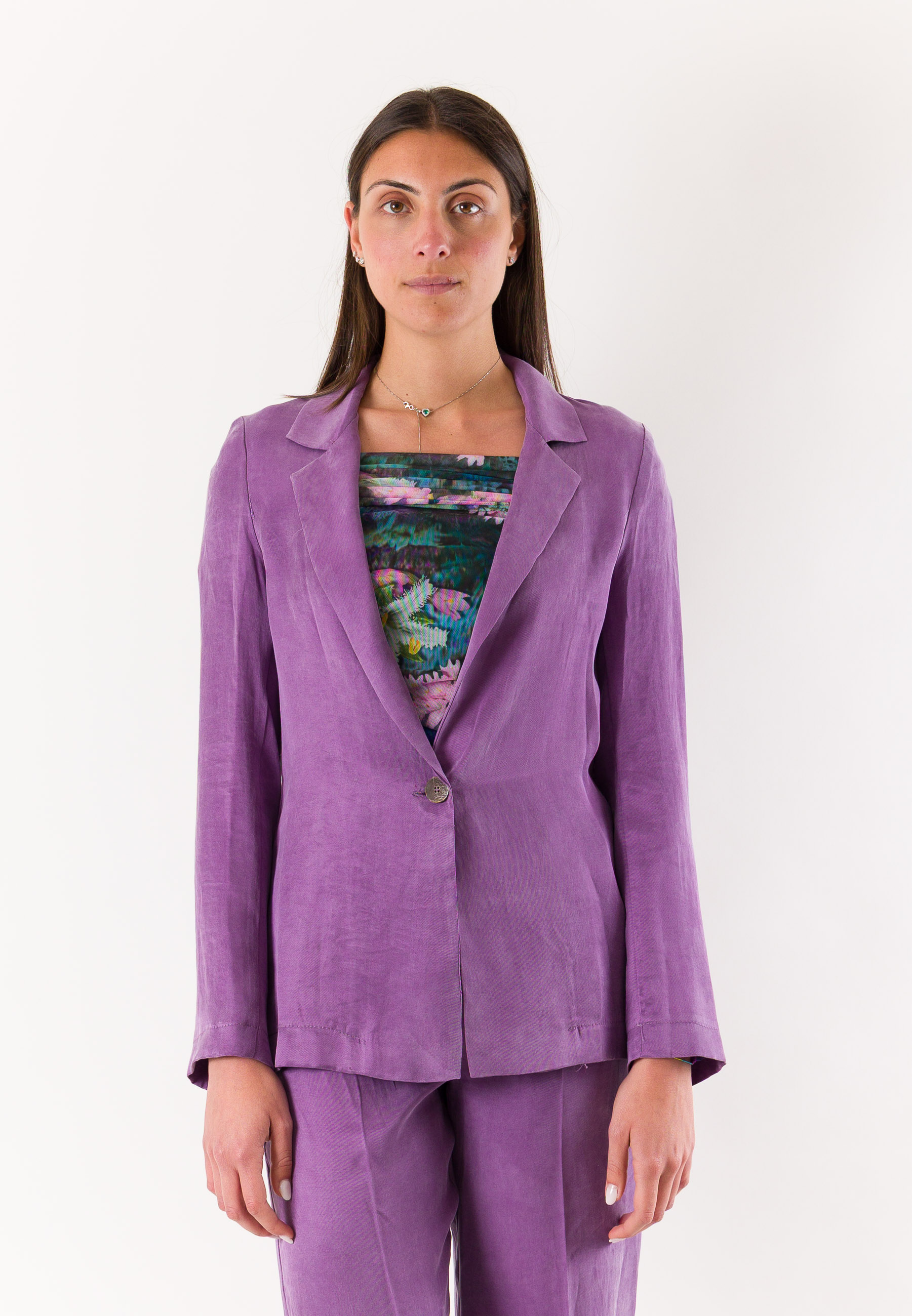 Essenziale ed elegante, questa giacca Mesange a 1 bottone è un capo sartoriale pensato per completare look raffinati e contemporanei. Realizzata in Italia e confezionata in 100% lyocell, offre una texture morbida, fluida e piacevole al tatto, ideale per garantire comfort e vestibilità durante tutta la giornata. Il design presenta una chiusura frontale con un bottone, rever classico e una linea leggermente sagomata che valorizza la silhouette senza costringerla. Le maniche lunghe e il taglio pulito rendono la giacca estremamente versatile, perfetta da abbinare a pantaloni coordinati, gonne o denim. Un capo elegante e moderno firmato Mesange Made in Italy.