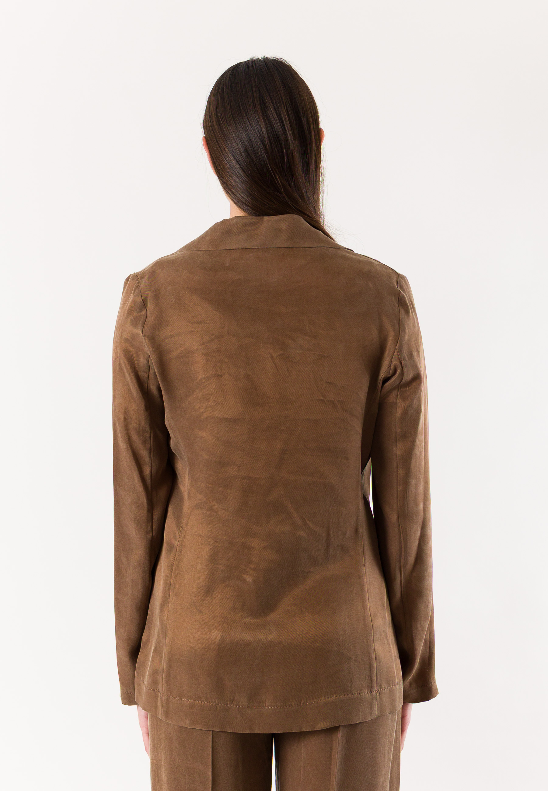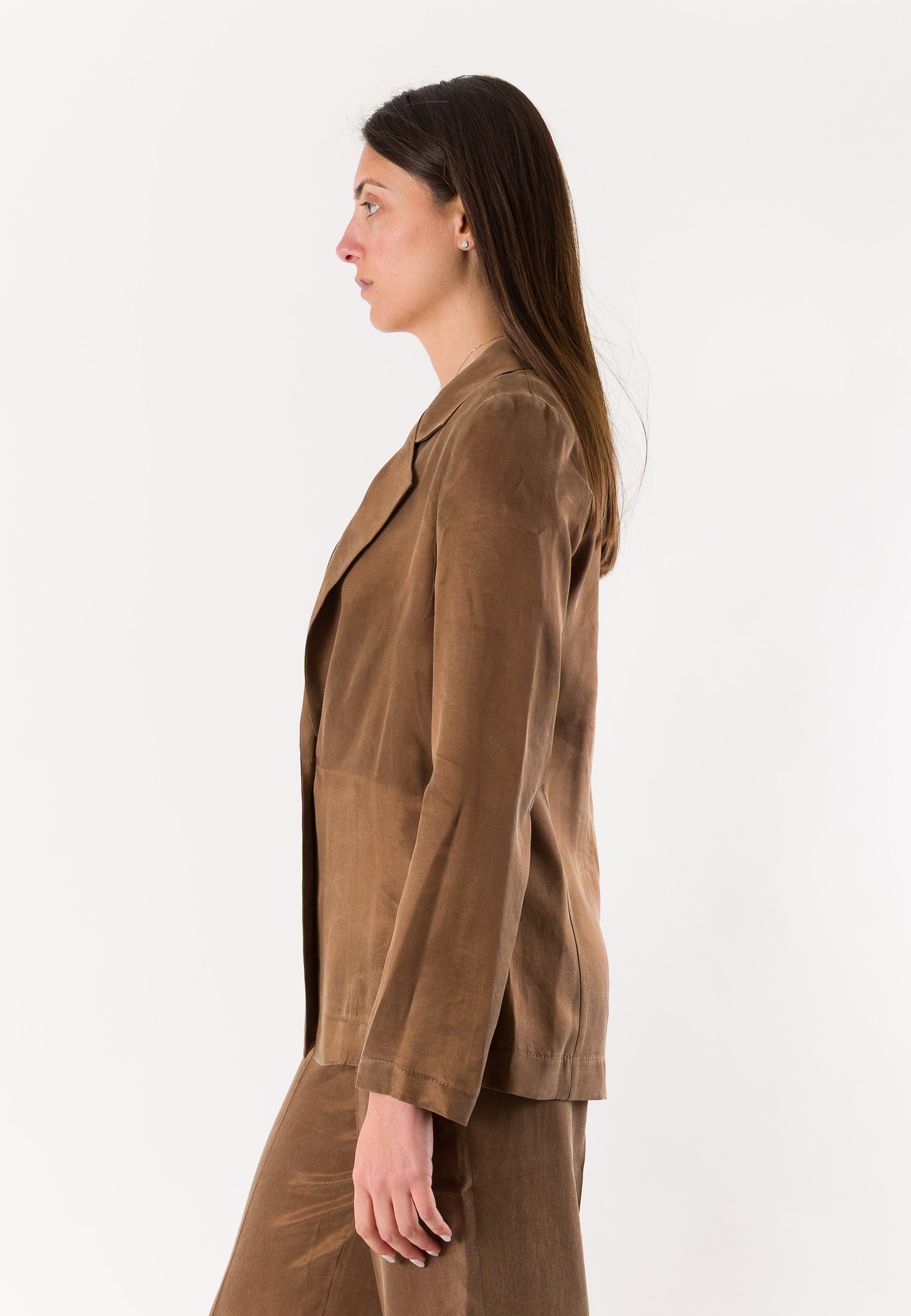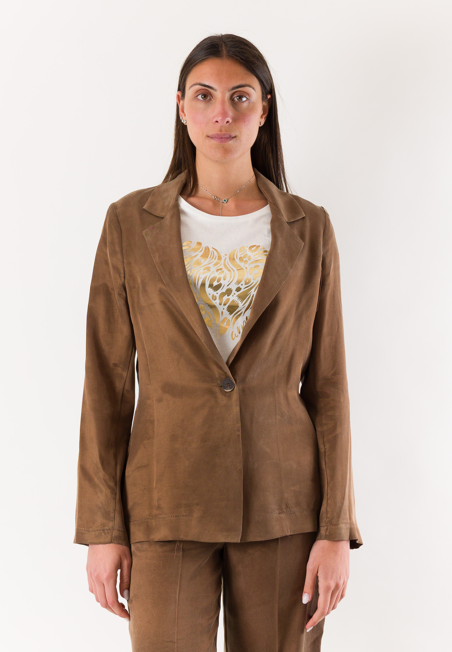 Essenziale ed elegante, questa giacca Mesange a 1 bottone è un capo sartoriale pensato per completare look raffinati e contemporanei. Realizzata in Italia e confezionata in 100% lyocell, offre una texture morbida, fluida e piacevole al tatto, ideale per garantire comfort e vestibilità durante tutta la giornata. Il design presenta una chiusura frontale con un bottone, rever classico e una linea leggermente sagomata che valorizza la silhouette senza costringerla. Le maniche lunghe e il taglio pulito rendono la giacca estremamente versatile, perfetta da abbinare a pantaloni coordinati, gonne o denim. Un capo elegante e moderno firmato Mesange Made in Italy.