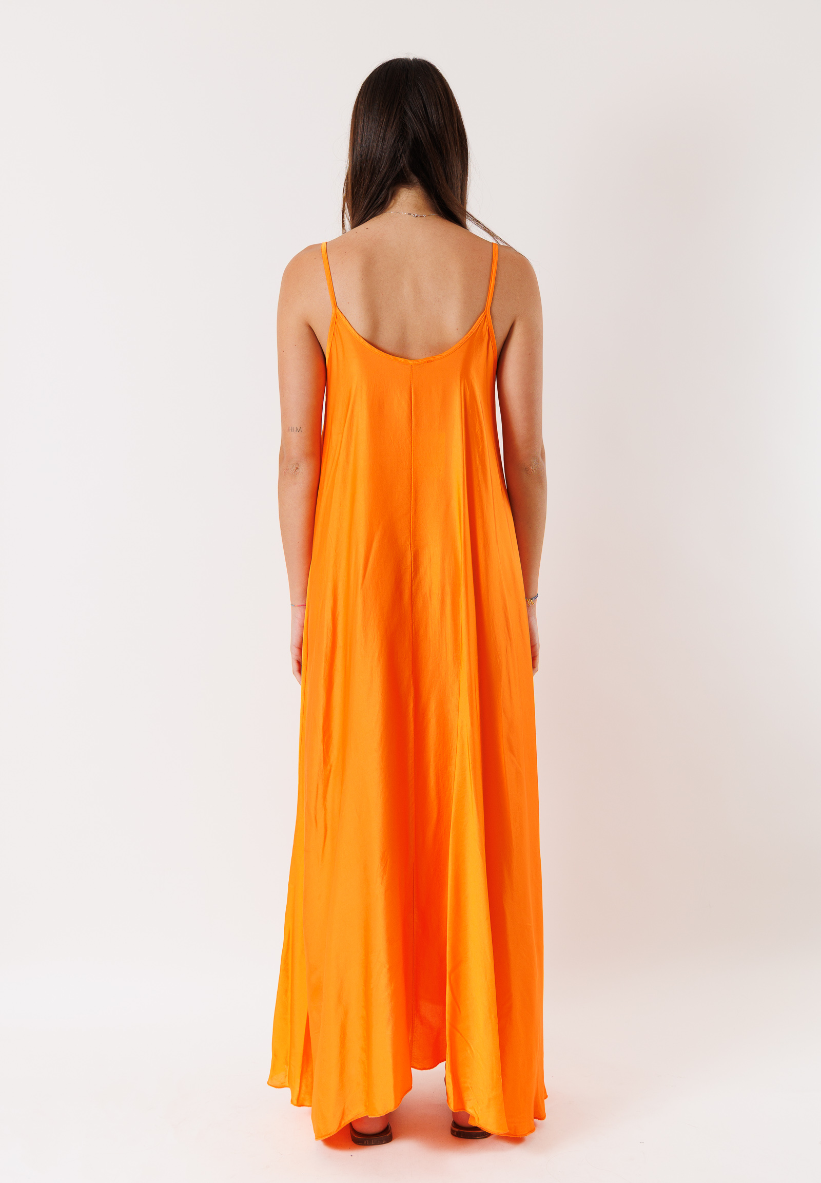 Abito lungo in raso misto viscosa e seta, dal design ampio e fluido.