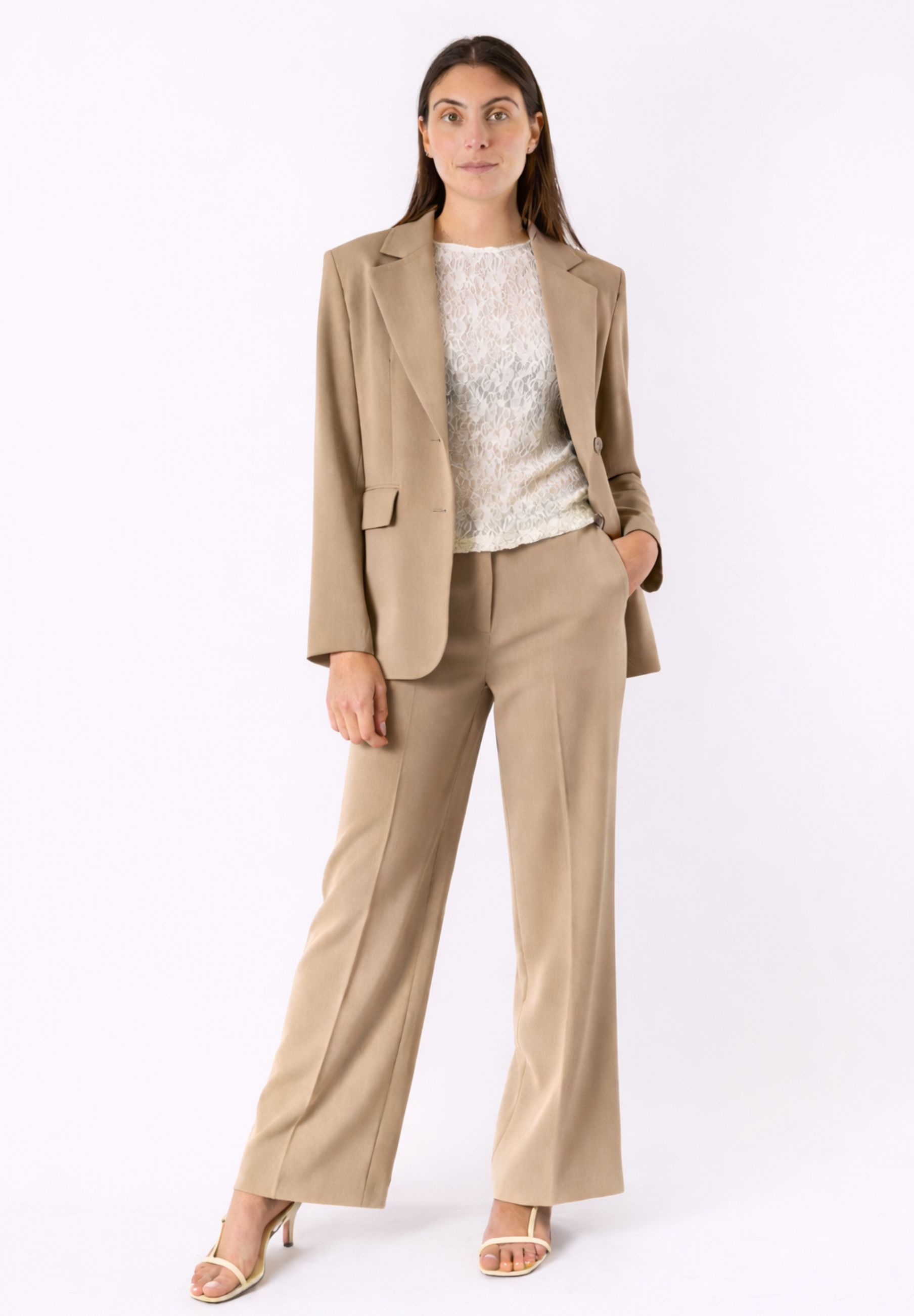 Il taglio dritto e raffinato slancia la figura, rendendo questi pantaloni perfetti sia per look professionali che per outfit casual chic. Si abbinano facilmente a camicie, top in pizzo, blazer o maglieria, permettendo di creare combinazioni sempre attuali.