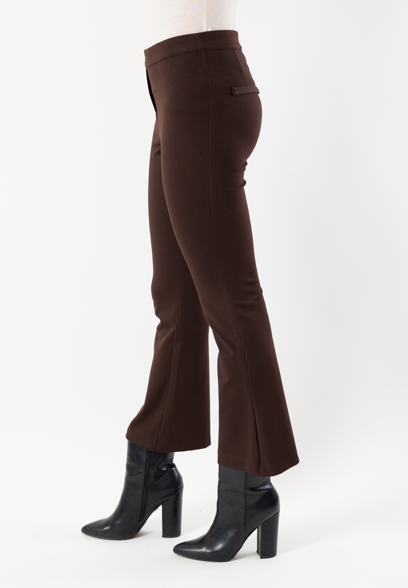 Il design presenta gamba leggermente svasata, vita confortevole ed elastica, tasche funzionali e un taglio studiato per slanciare la figura. Ideali per il quotidiano, per lufficio o per look più raffinati, si abbinano perfettamente a maglie, camicie e blazer coordinati.