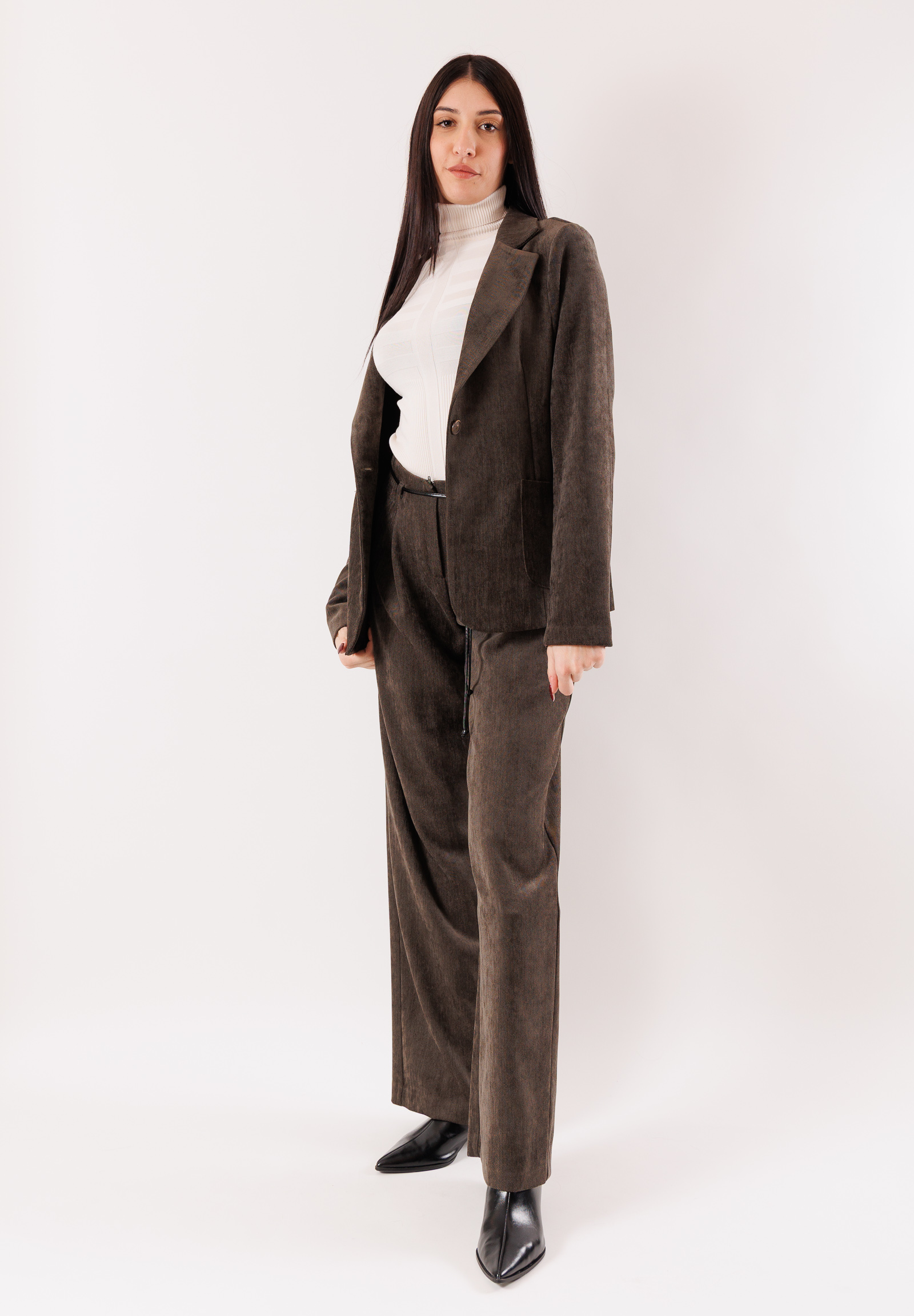 Il design a gamba ampia dona una silhouette fluida e sofisticata, mentre il cordino regolabile in vita aggiunge un dettaglio moderno e funzionale. Versatili e facili da abbinare, questi pantaloni si prestano a look eleganti con la giacca coordinata o a outfit più casual con maglioni e camicie.