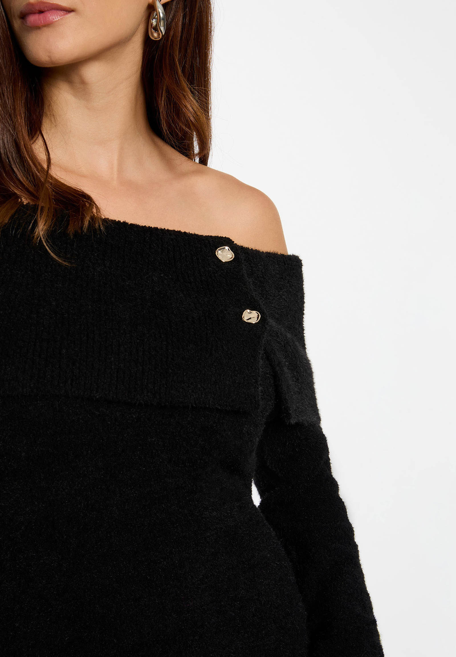 Abito corto con spalle scoperte e bottoni decorativi RMBOGO