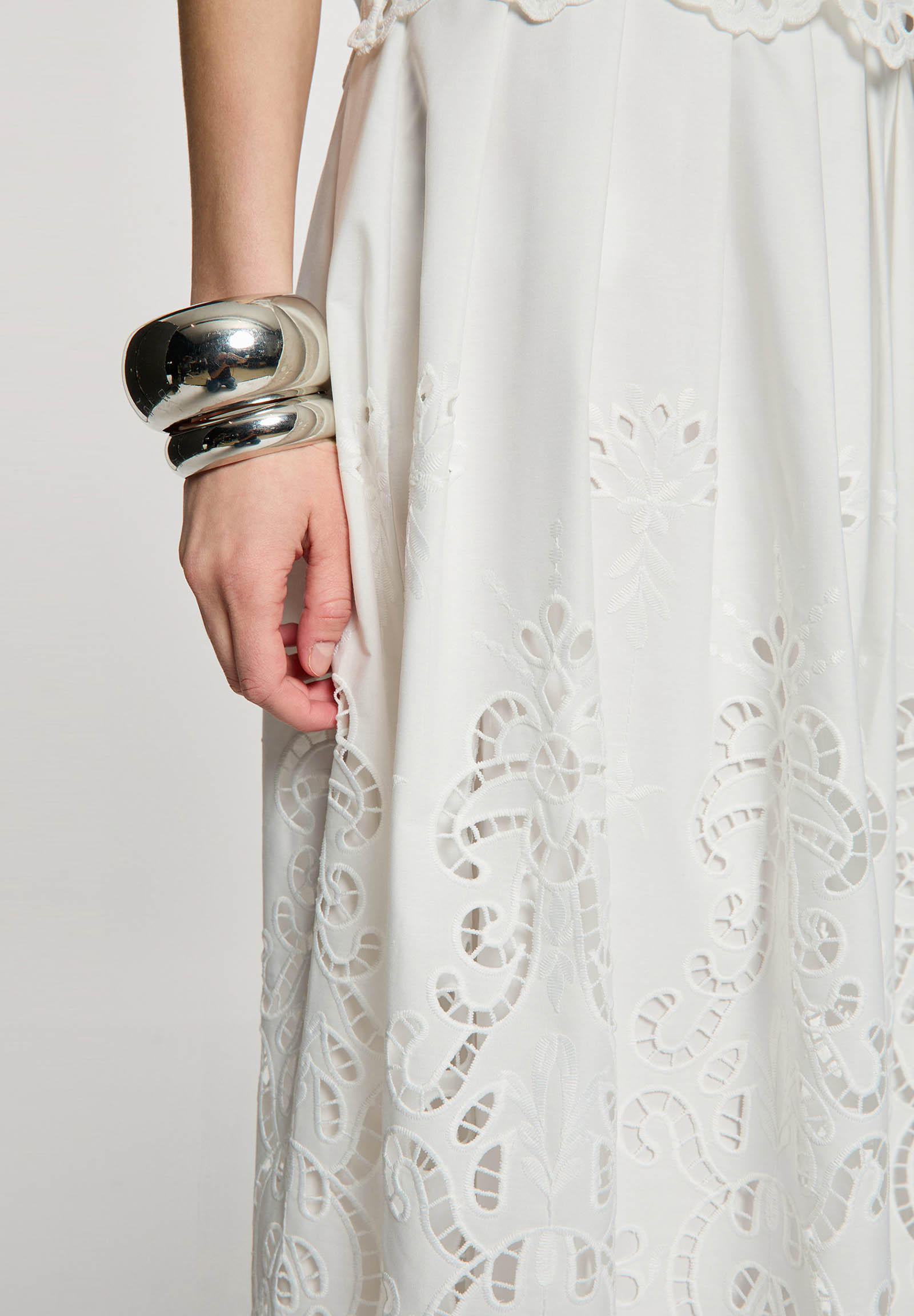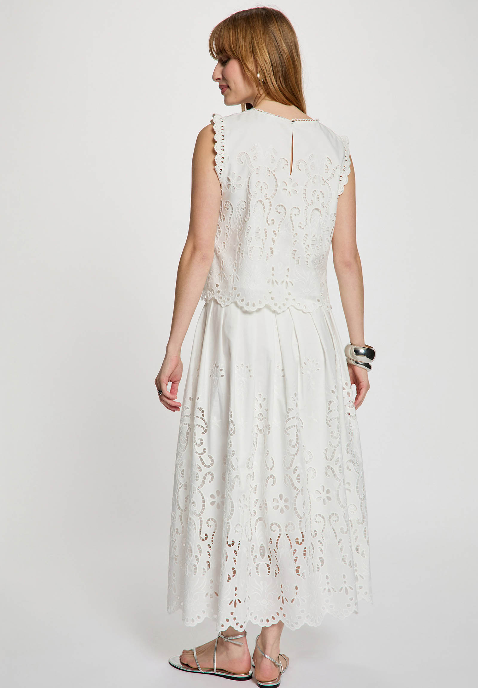 Elegante e femminile, questa gonna lunga Morgan De Toi è caratterizzata da una raffinata lavorazione ricamata che dona al capo un effetto delicato e sofisticato. Realizzata in 89% poliestere e 11% cotone, presenta una struttura leggera e confortevole, ideale per accompagnare i movimenti con naturalezza. La lunghezza midi-lunga e la linea morbida leggermente svasata valorizzano la silhouette, mentre i ricami traforati creano un elegante gioco di trasparenze. Facile da abbinare a top, bluse o camicie, è perfetta per look estivi, occasioni casual chic o eventi informali curati. Un capo versatile e raffinato firmato Morgan De Toi.