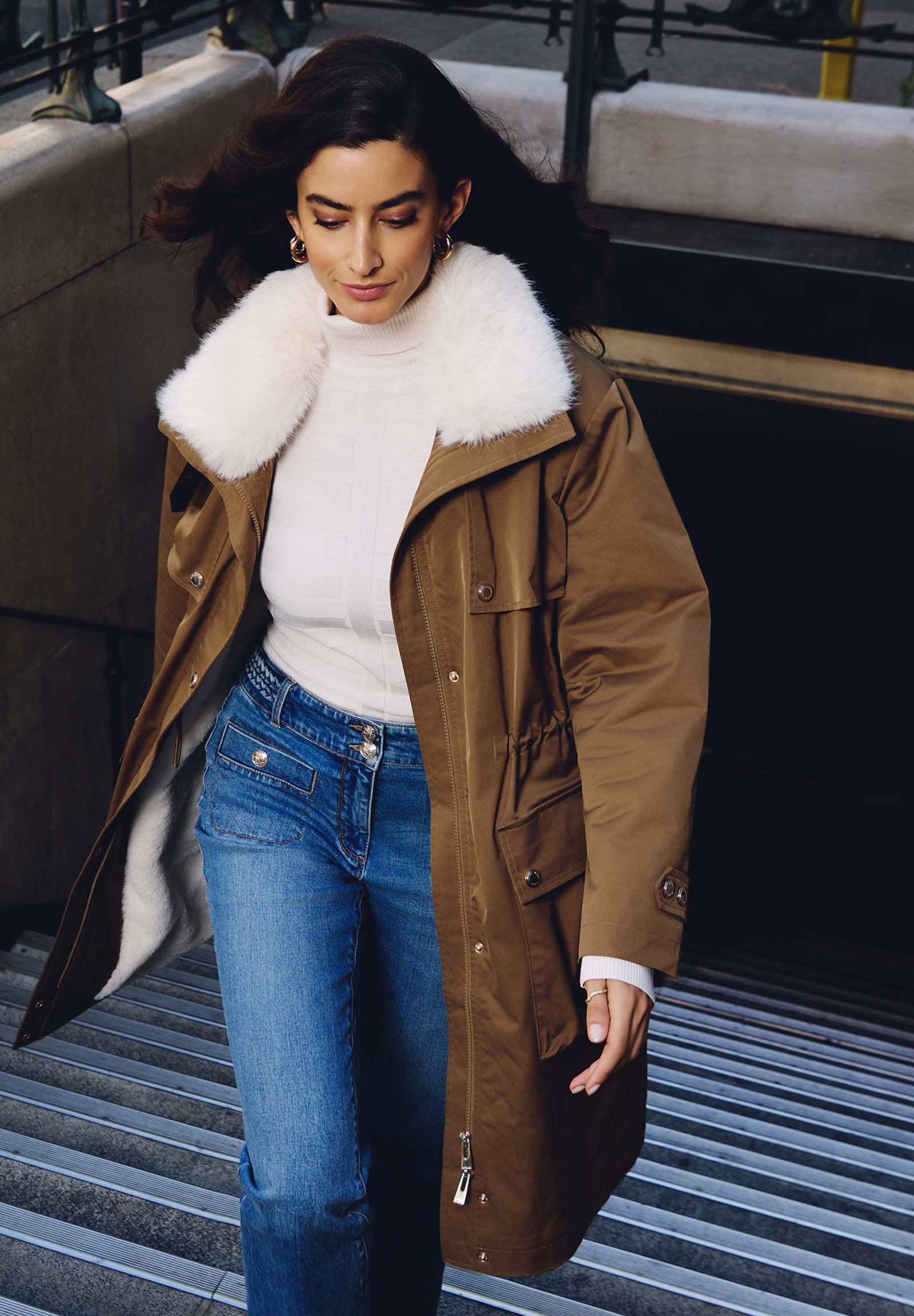 Parka lungo dalla linea moderna con collo in ecopelliccia GAPI ( TAGLIE FRANCESI )