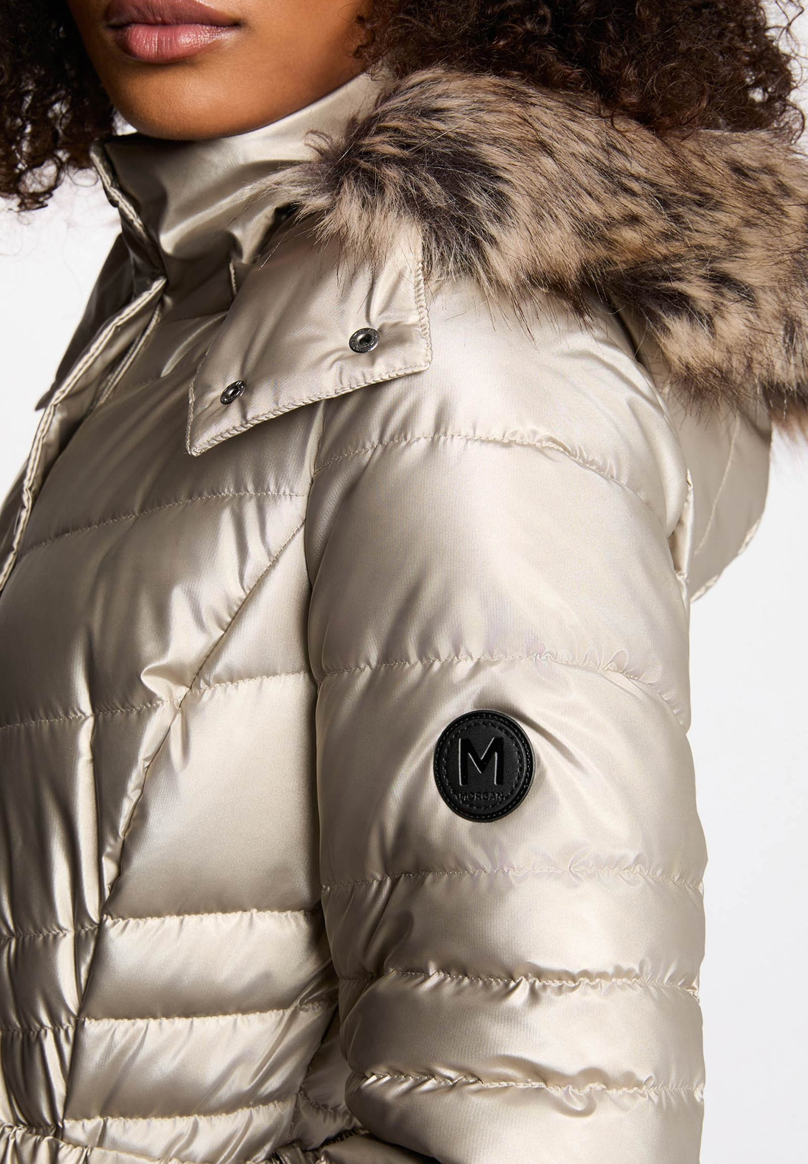 La cintura in vita con fibbia enfatizza la femminilità, mentre il cappuccio con eco-pelliccia removibile aggiunge un tocco glamour e pratico. Ideale per look quotidiani, outfit da ufficio o passeggiate invernali, questo piumino unisce funzionalità e ricercatezza tipica dello stile Morgan.