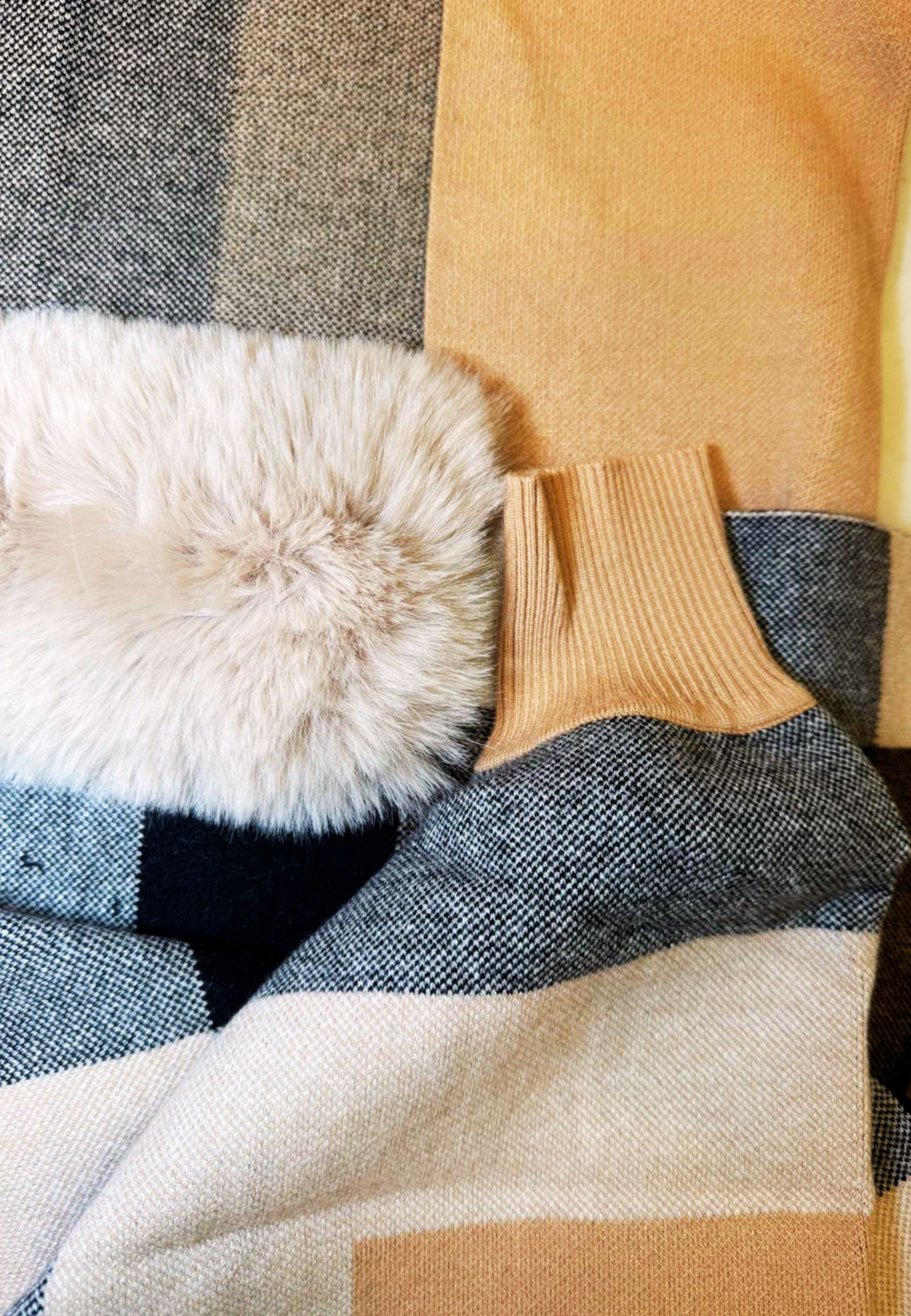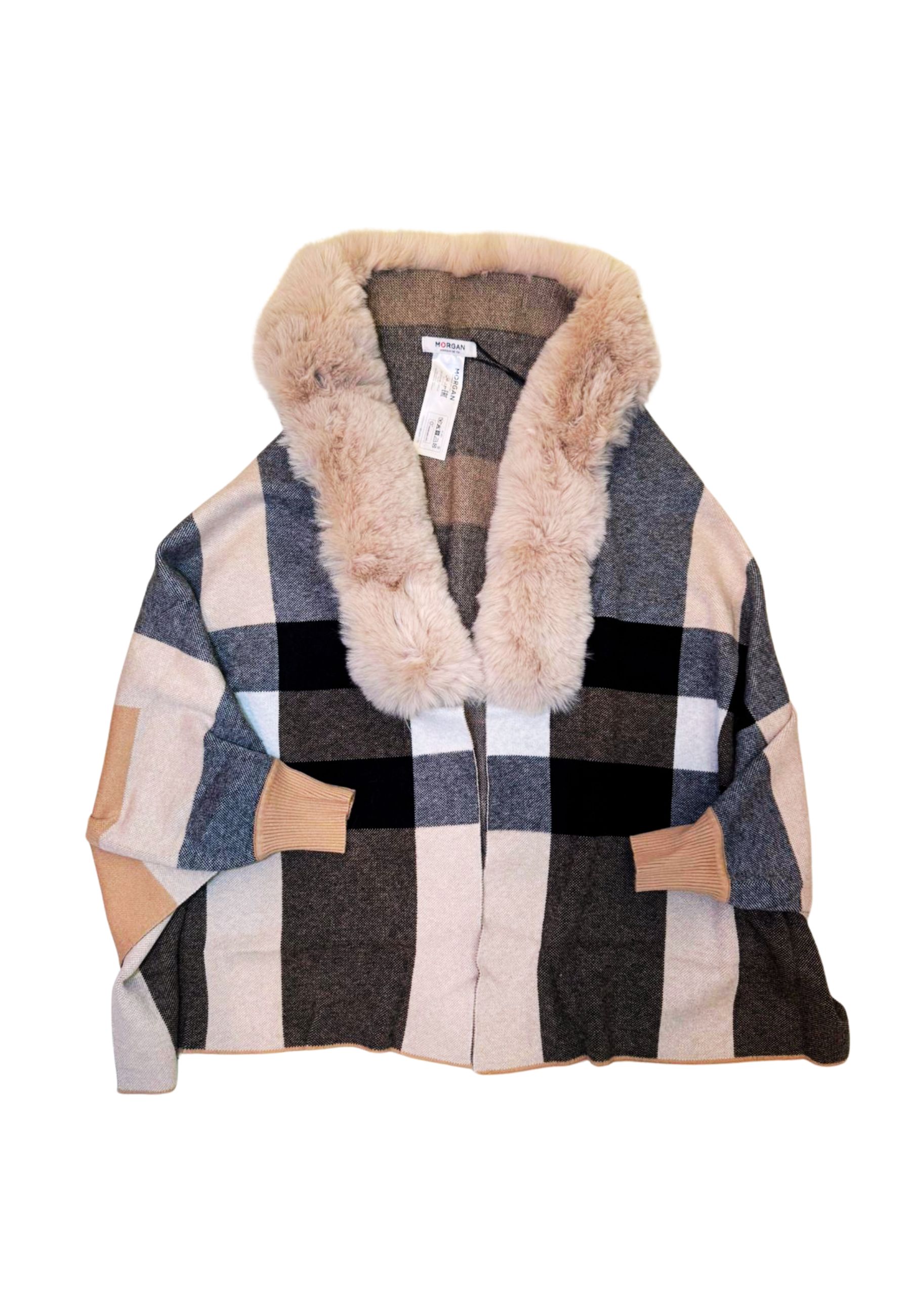 Poncho maxi quadri con dettagli in ecopelliccia 5TOUNE