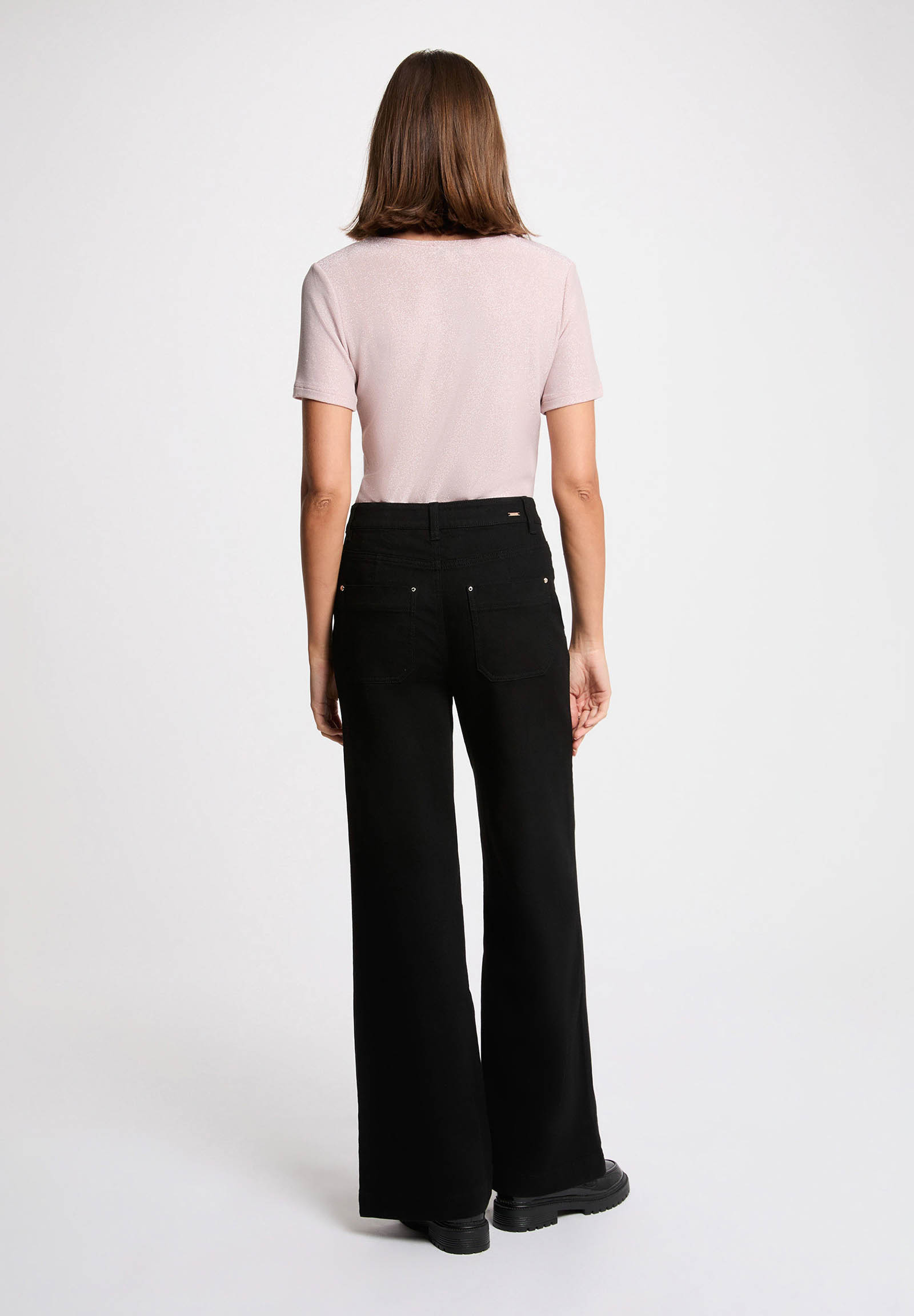 Il design con scollo a V valorizza la silhouette, mentre la finitura leggermente brillante dona un tocco elegante e raffinato, perfetto per elevare anche i look più semplici. Ideale da indossare sia di giorno che di sera, si abbina facilmente a jeans, pantaloni sartoriali, gonne o blazer.
