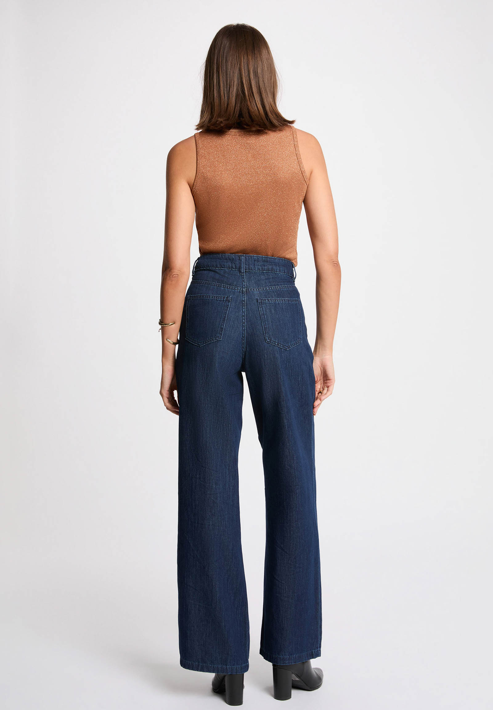 Realizzato in 78% viscosa Lenzing Ecovero, 16% poliestere e 6% filo metallizzato, garantisce una sensazione morbida sulla pelle, unottima traspirabilità e una delicata luminosità che dona al look un tocco glamour. Il tessuto eco-sostenibile assicura qualità e rispetto per lambiente.
