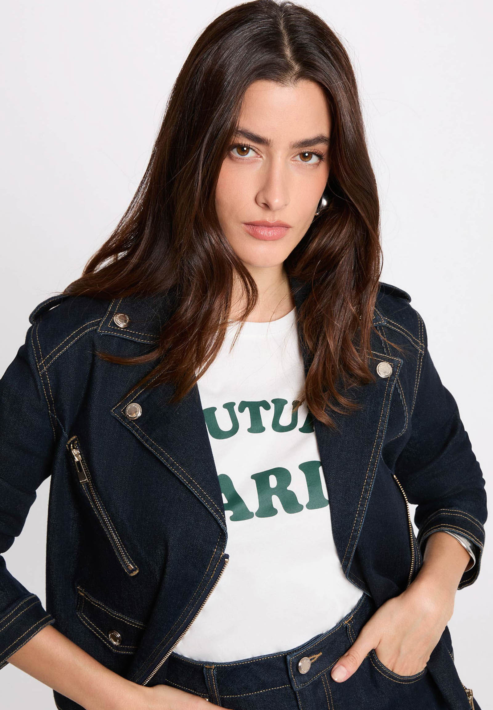 Composizione: COTON 64%, POLYESTER RECYCLE 32%, VISCOSE 3%, ELASTHANNE 1%