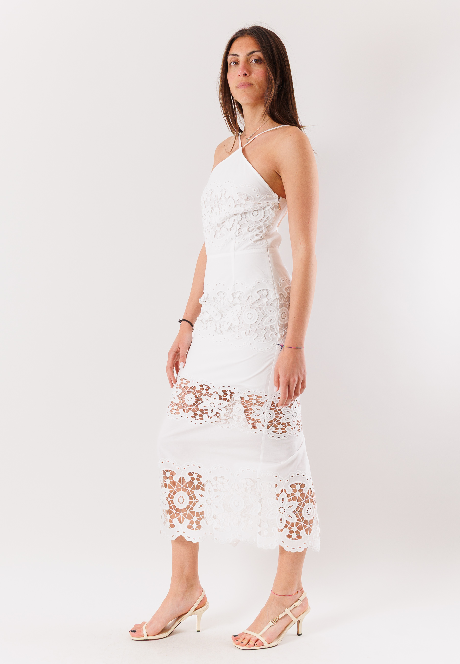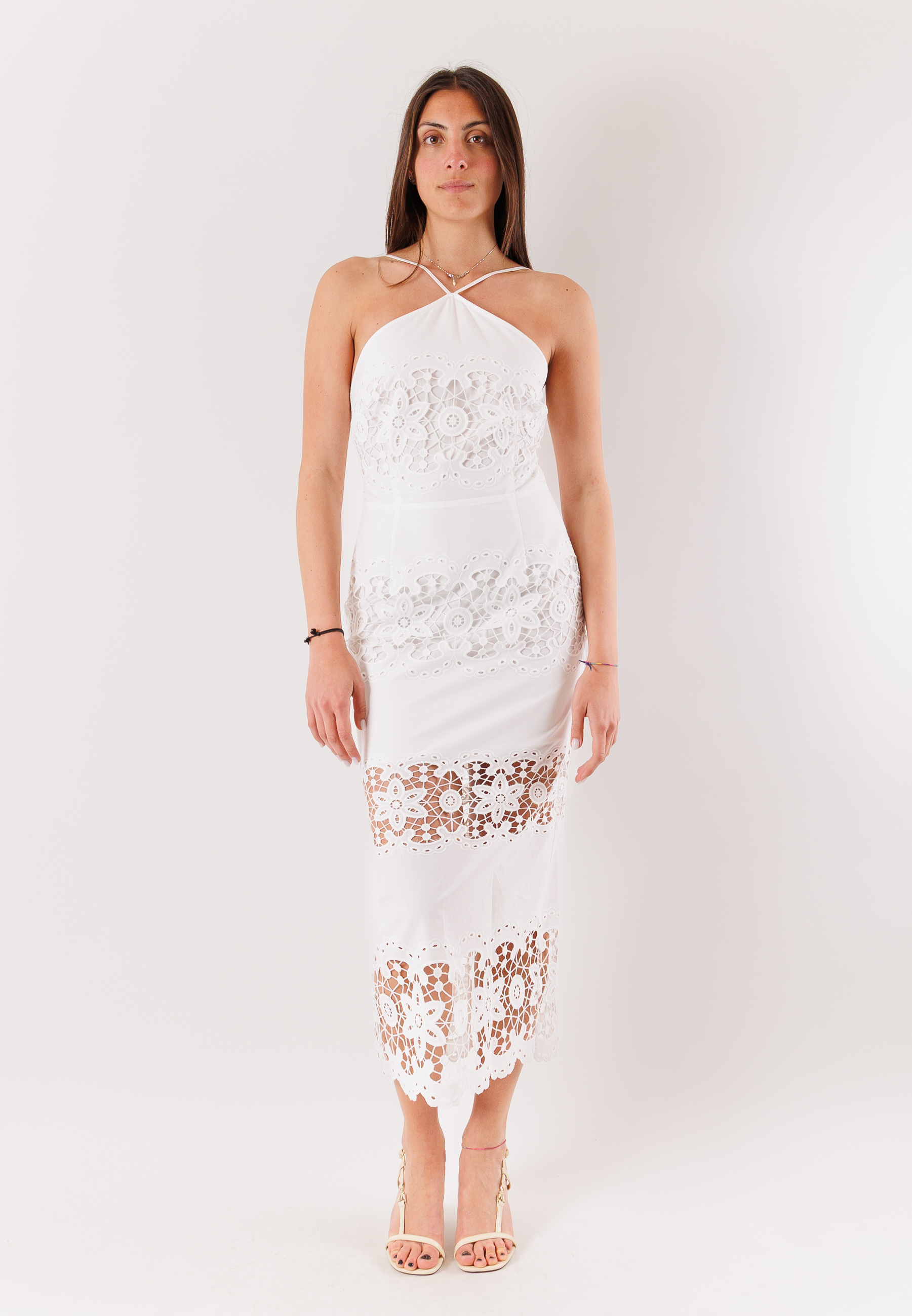 Abito lungo con inserti in pizzo traforato 2A3069A773