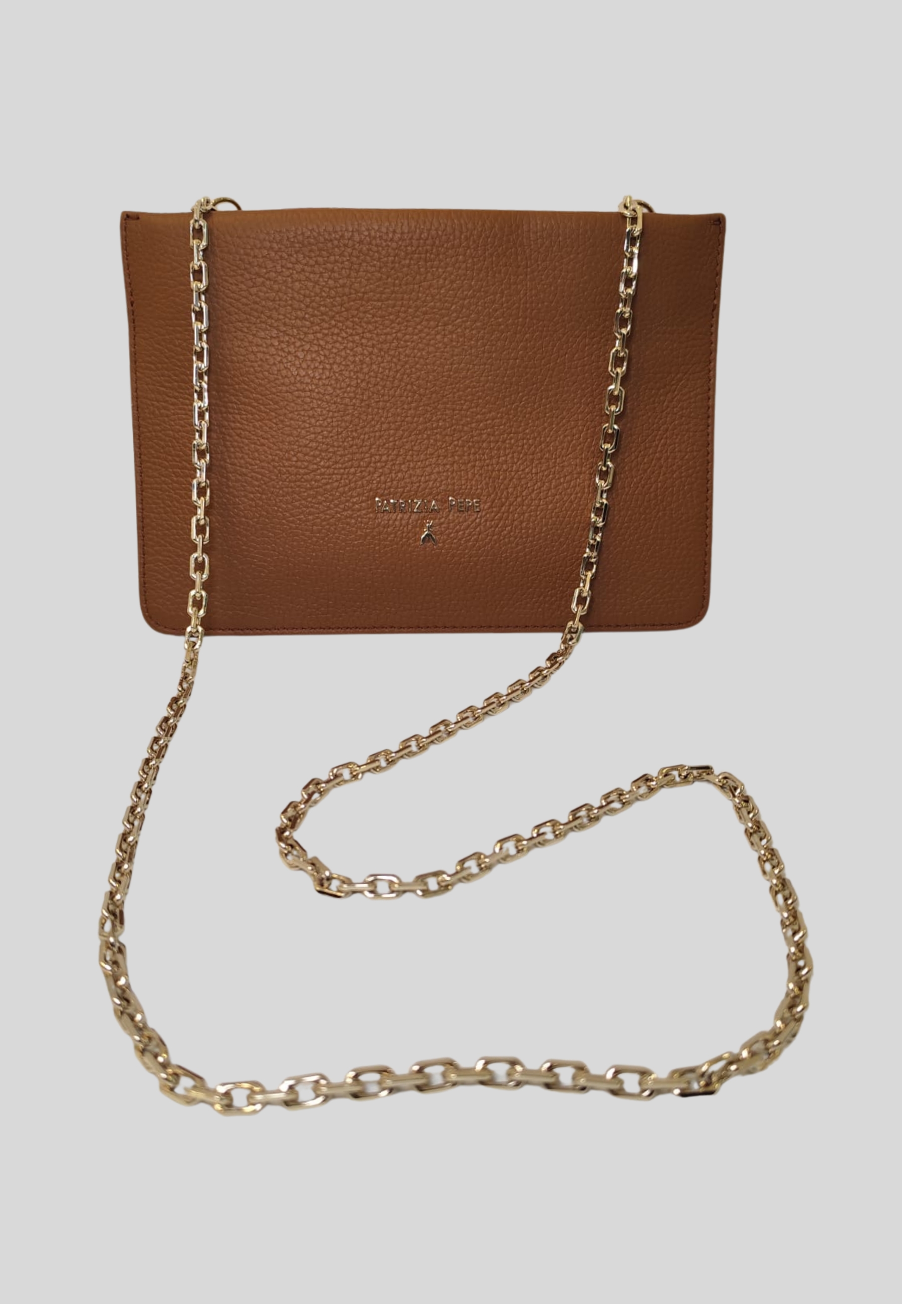 La borsa firmata Patrizia Pepe rappresenta lequilibrio perfetto tra eleganza, funzionalità e stile contemporaneo. Il design essenziale, valorizzato dalla tracolla a catena dorata e dal logo frontale, rende questo modello ideale per completare con classe qualsiasi look, dal casual chic al più raffinato.