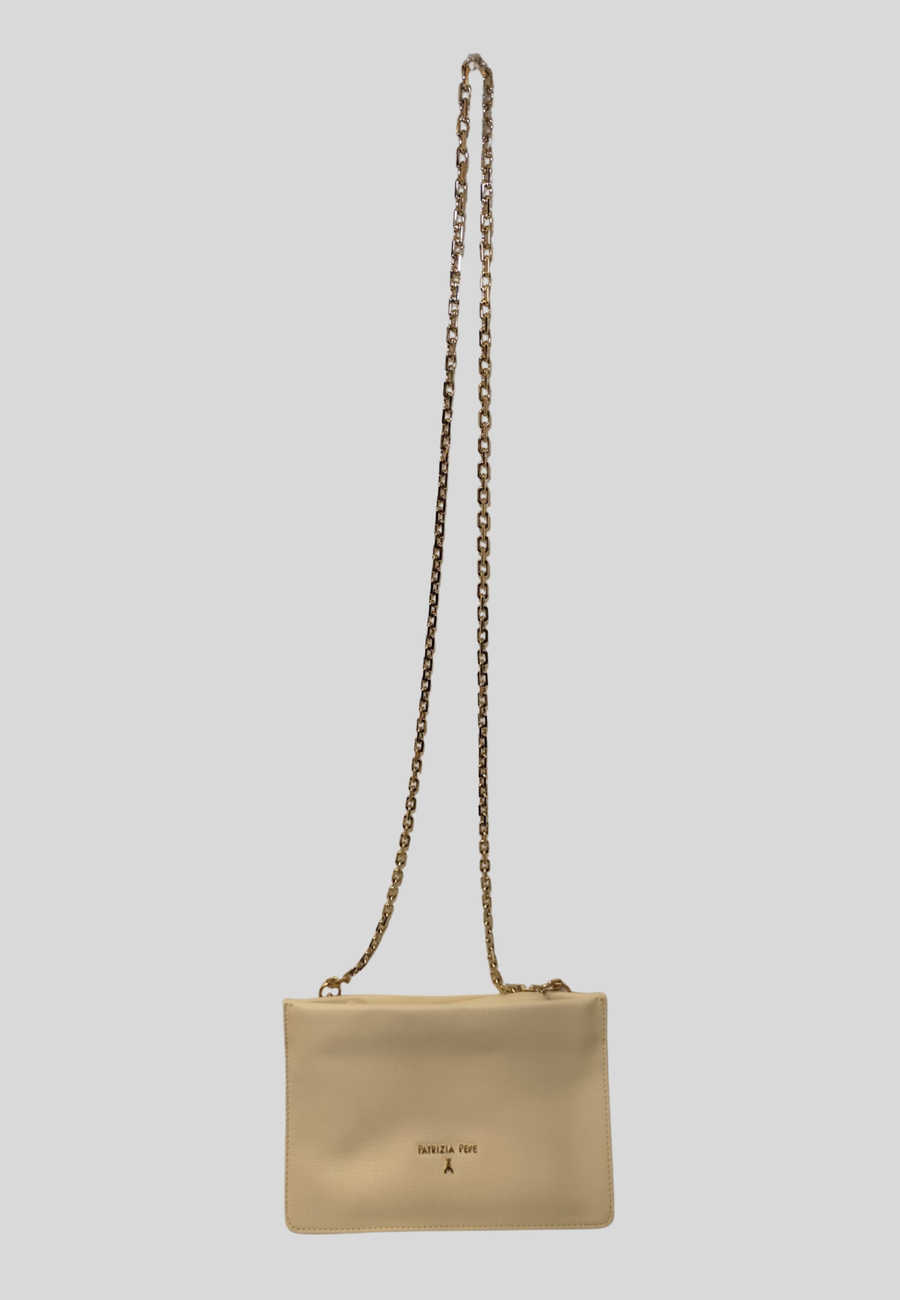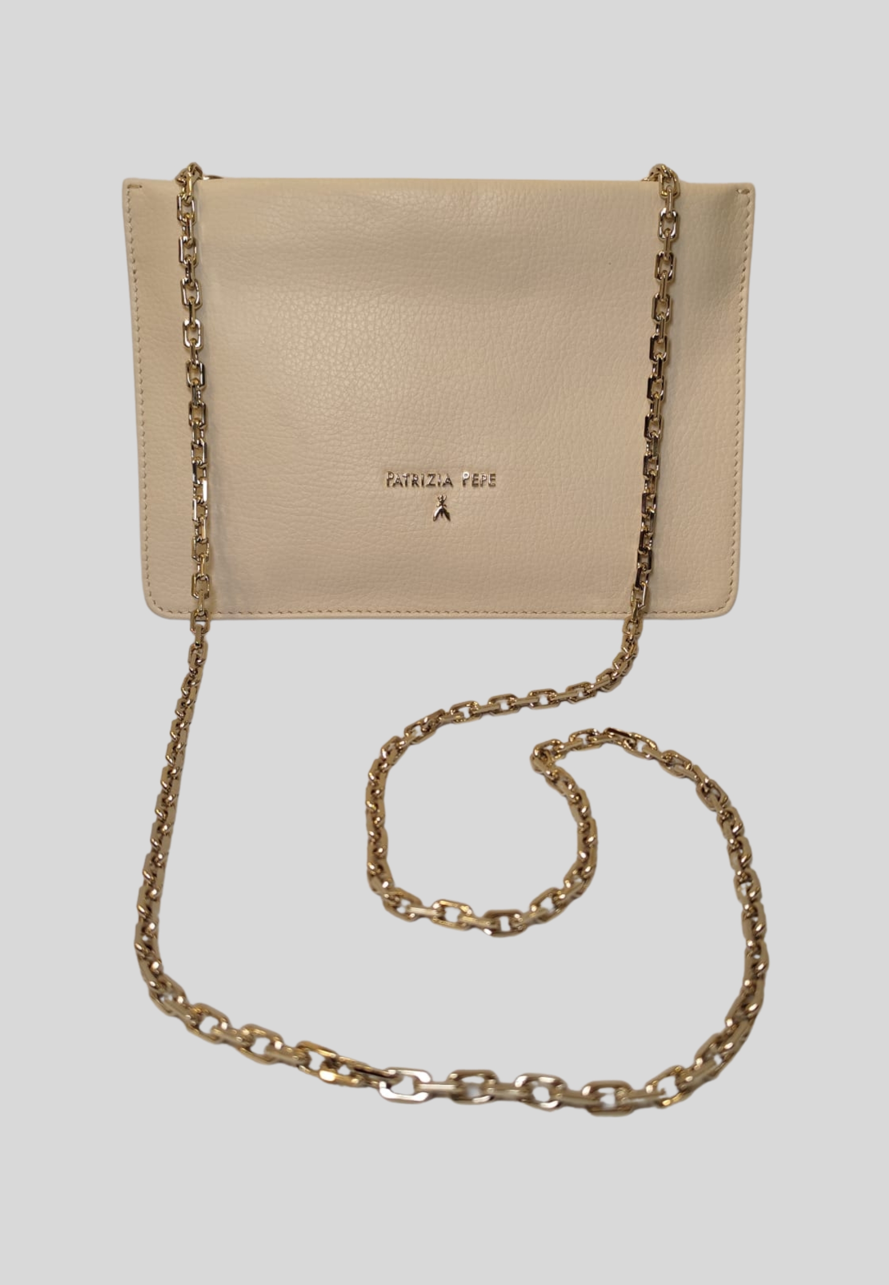 La borsa firmata Patrizia Pepe rappresenta lequilibrio perfetto tra eleganza, funzionalità e stile contemporaneo. Il design essenziale, valorizzato dalla tracolla a catena dorata e dal logo frontale, rende questo modello ideale per completare con classe qualsiasi look, dal casual chic al più raffinato.