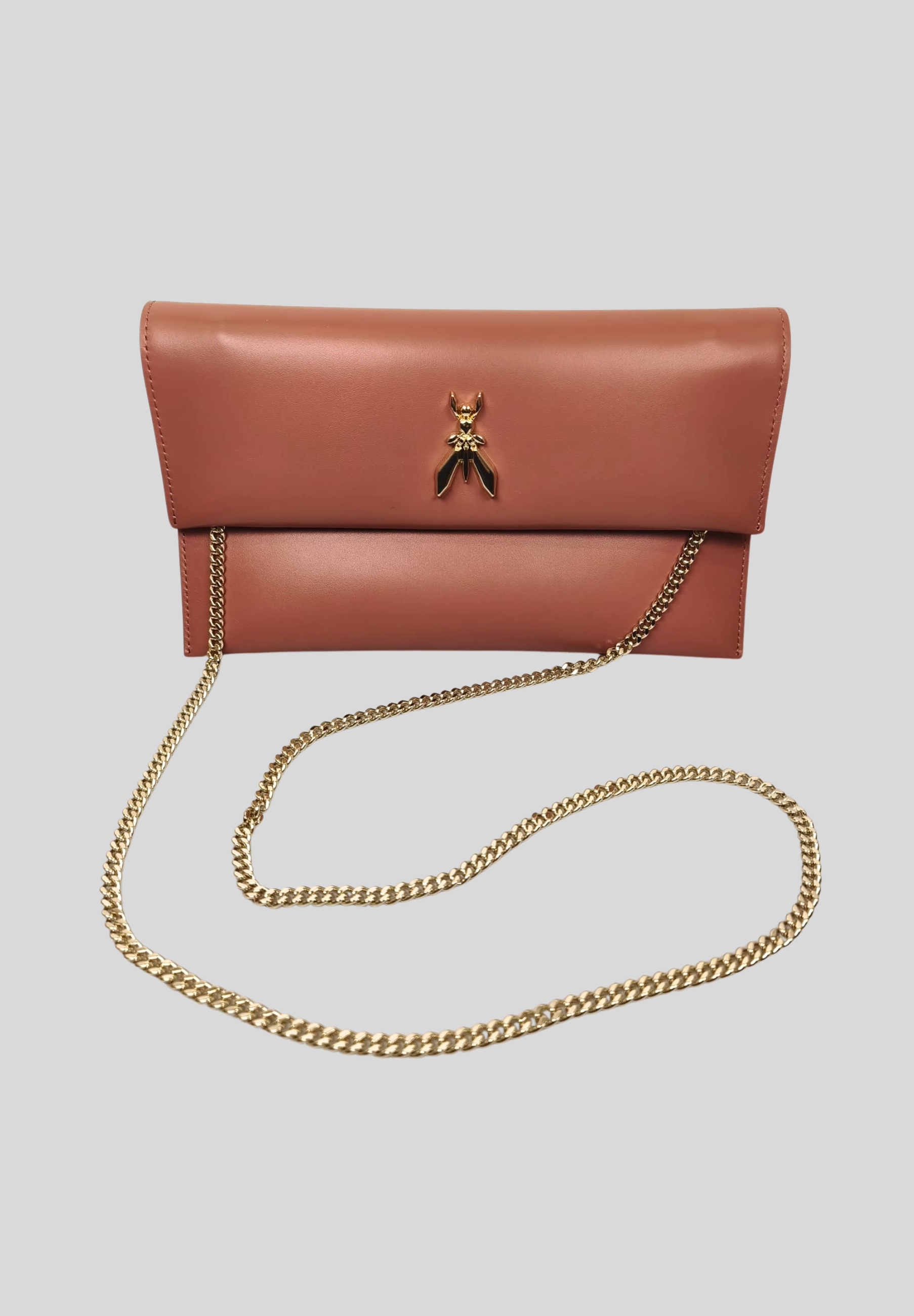 Clutch Patrizia Pepe realizzata in 100% pelle di agnello, caratterizzata da un design lineare e un look raffinato ideale per completare outfit sia da giorno che da sera.
