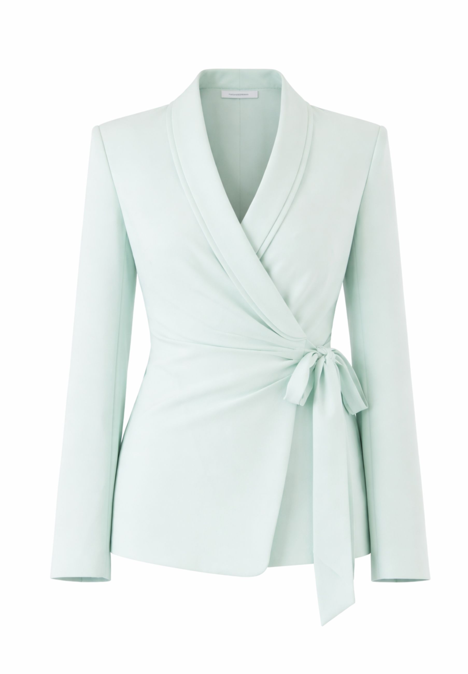 Il design è caratterizzato dalla chiusura incrociata e dalla cintura in tono, che permette di regolare la vestibilità e valorizzare il punto vita con un elegante effetto avvolgente. Il rever classico, le maniche lunghe e le linee pulite donano al capo unestetica raffinata e moderna, perfetta per completare look professionali o outfit più ricercati.