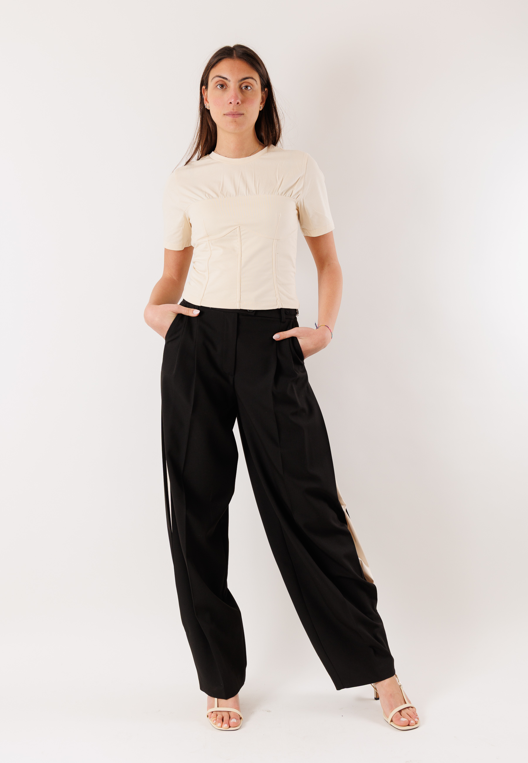 Perfetta da abbinare a pantaloni sartoriali, jeans, gonne o sotto blazer e giacche, questa maglia si adatta con facilità a outfit casual chic, business casual ed eleganti. Un capo pensato per la donna dinamica che ricerca qualità, praticità e stile senza tempo.
