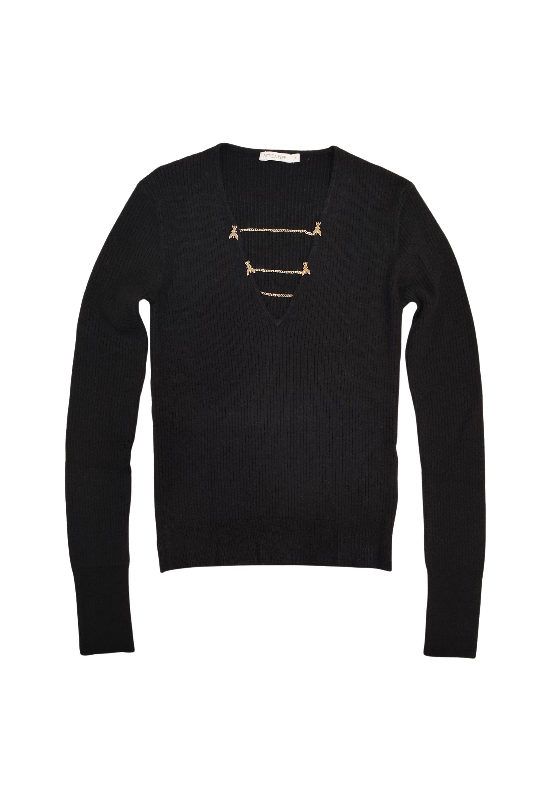 Il design con scollo a V arricchito da dettagli a listini dona un tocco moderno e sensuale, perfetto per look sia casual che eleganti.
