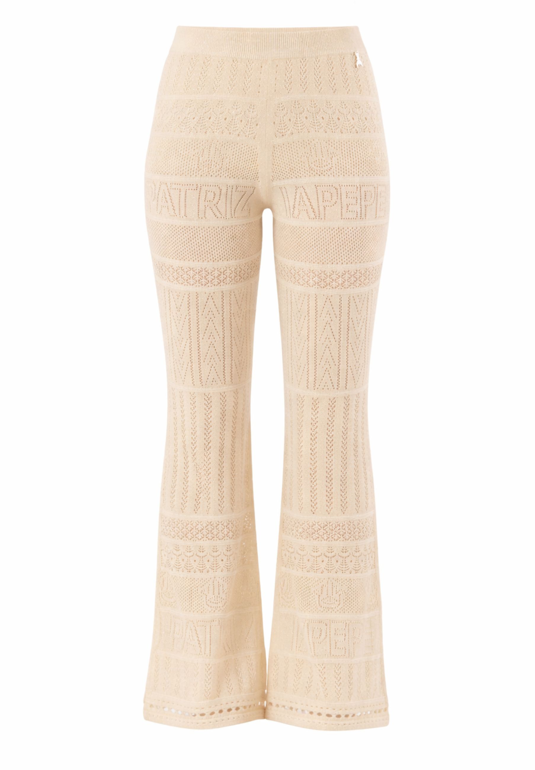 Il design è caratterizzato da una lavorazione traforata elegante e strutturata, che crea un sofisticato gioco di trame e trasparenze. Il taglio a zampa sul fondo slancia la figura e dona unallure contemporanea e femminile, mentre la vita aderente valorizza la silhouette con equilibrio e precisione.