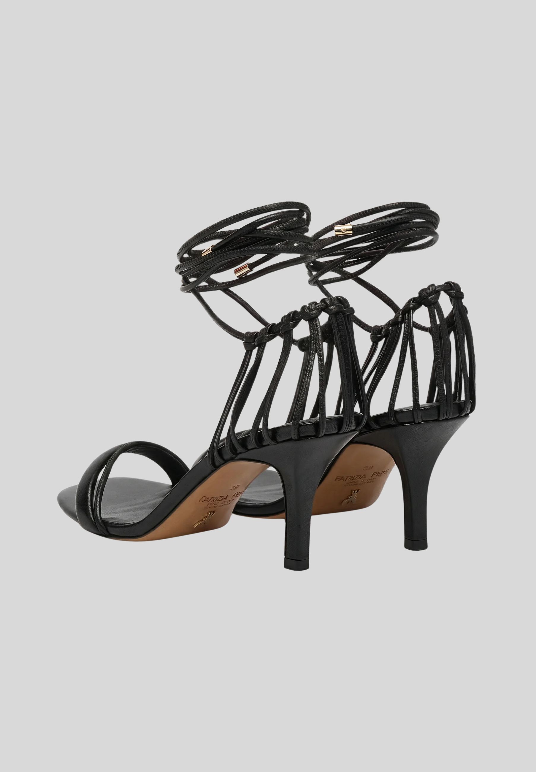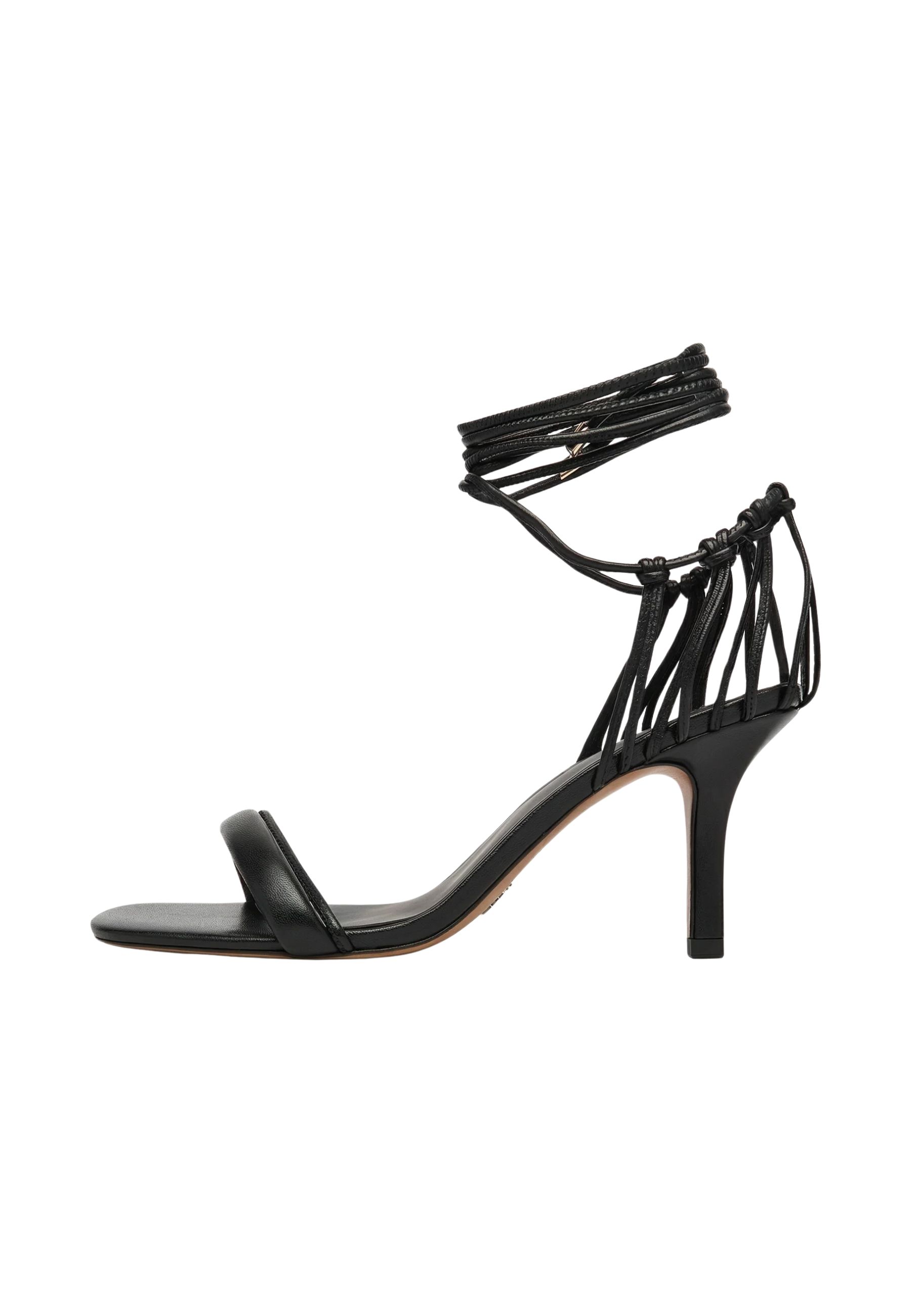 Il design presenta una struttura essenziale ma di forte impatto, caratterizzata da cinturini sottili che avvolgono la caviglia, creando un effetto raffinato e slanciato. Il tacco sottile dona uneleganza naturale, ideale per valorizzare la figura e completare outfit da cerimonia, eventi serali o mise sofisticate.