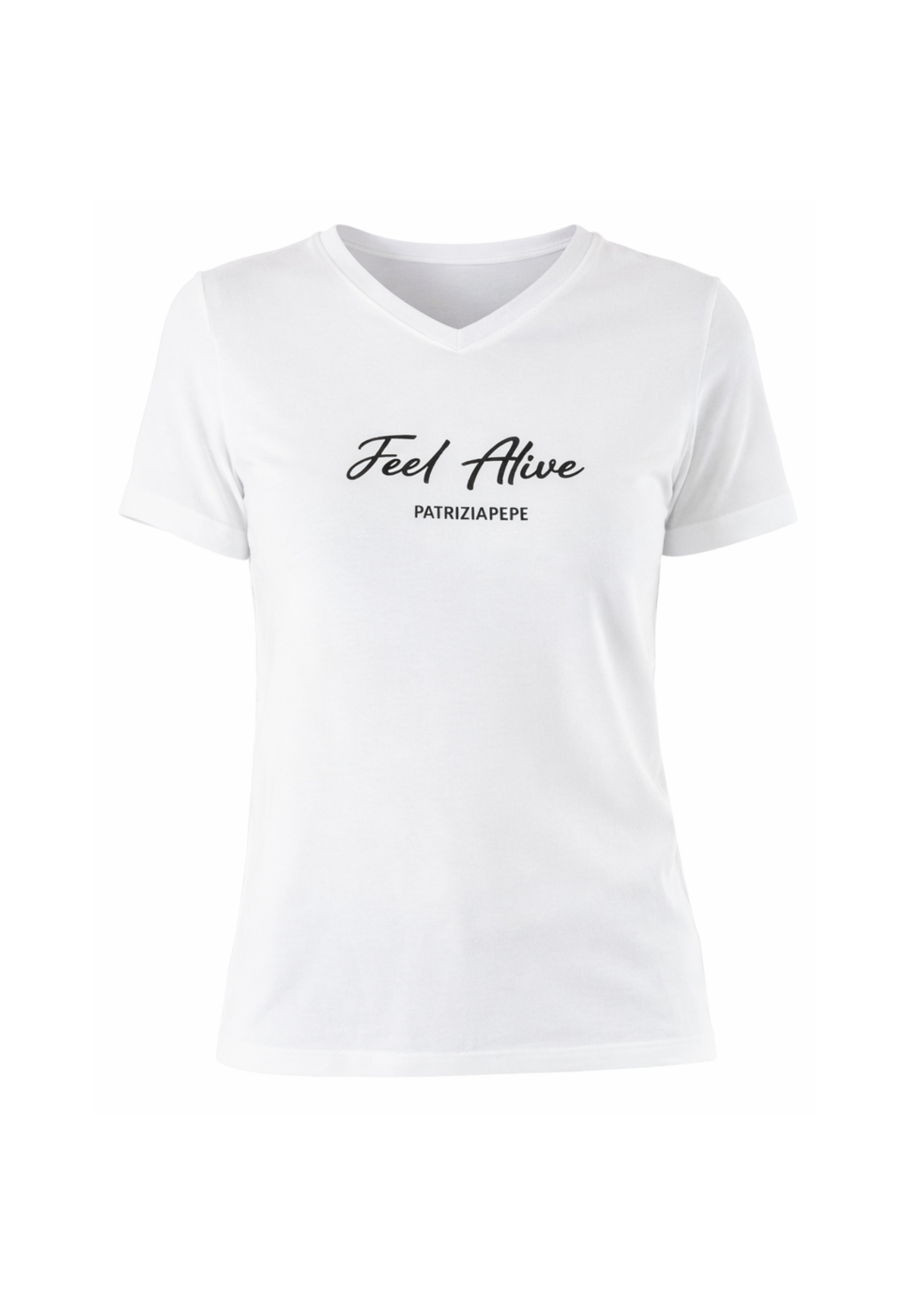 T-shirt Patrizia Pepe da donna dal design essenziale e contemporaneo, impreziosita da logo frontale che dona un tocco distintivo e riconoscibile. Un capo versatile, ideale per completare look casual-chic o outfit più dinamici, senza rinunciare allo stile.