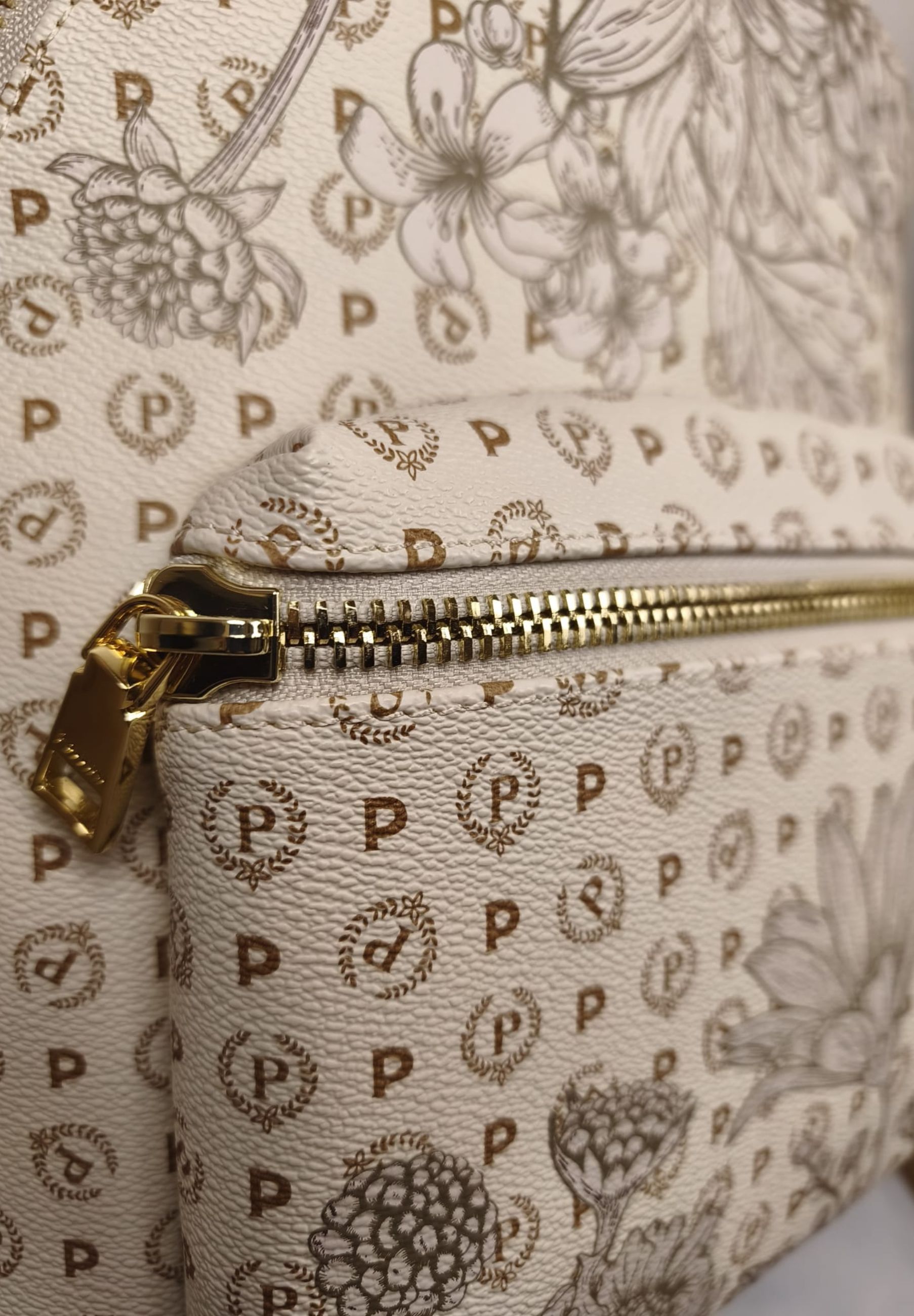Elegante e funzionale, lo zaino Pollini Heritage con stampa botanica è un accessorio iconico pensato per luso quotidiano con stile. Realizzato in 80% PVC e 20% pelle di vitello, presenta una raffinata stampa botanica all-over arricchita dal pattern logo Pollini, per un look distintivo e riconoscibile. Il design compatto include tasca frontale con zip, chiusura superiore con zip, spallacci regolabili e manico superiore per una portabilità versatile. Linterno foderato offre spazio ben organizzato per gli oggetti essenziali. Perfetto per look urbani, lavoro e tempo libero, unisce praticità ed eleganza firmate Pollini.